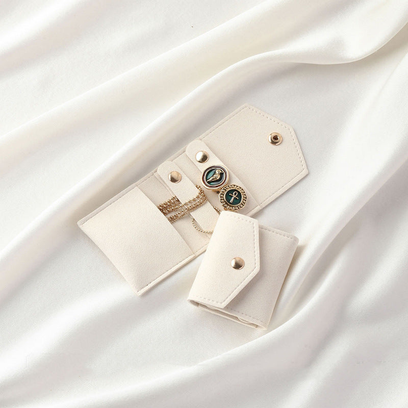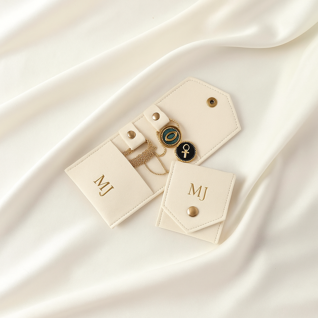 L’Écrin Nomade est la pochette idéale pour emporter vos bijoux partout avec style. Compacte, raffinée et disponible en deux tailles, elle protège vos trésors avec élégance, à la maison comme en voyage.